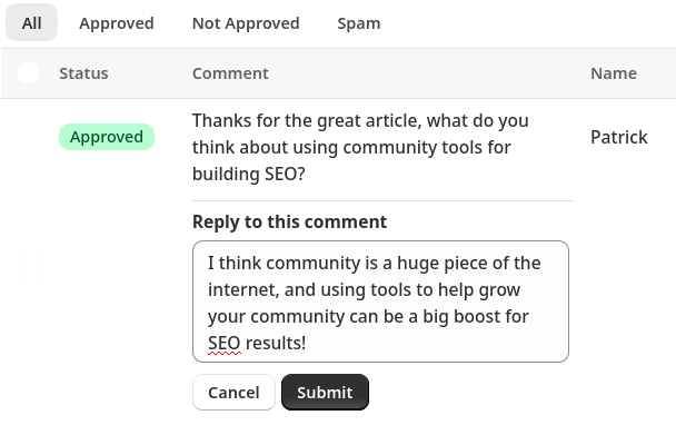 Show your readers you care by responding to their comments. The admin replies feature lets you jump into the conversation, answer questions, and build a stronger connection with your audience. It’s a great way to foster trust and loyalty among your readers. Instant email notifications keep you up to date with what's happening in your blog comment section.